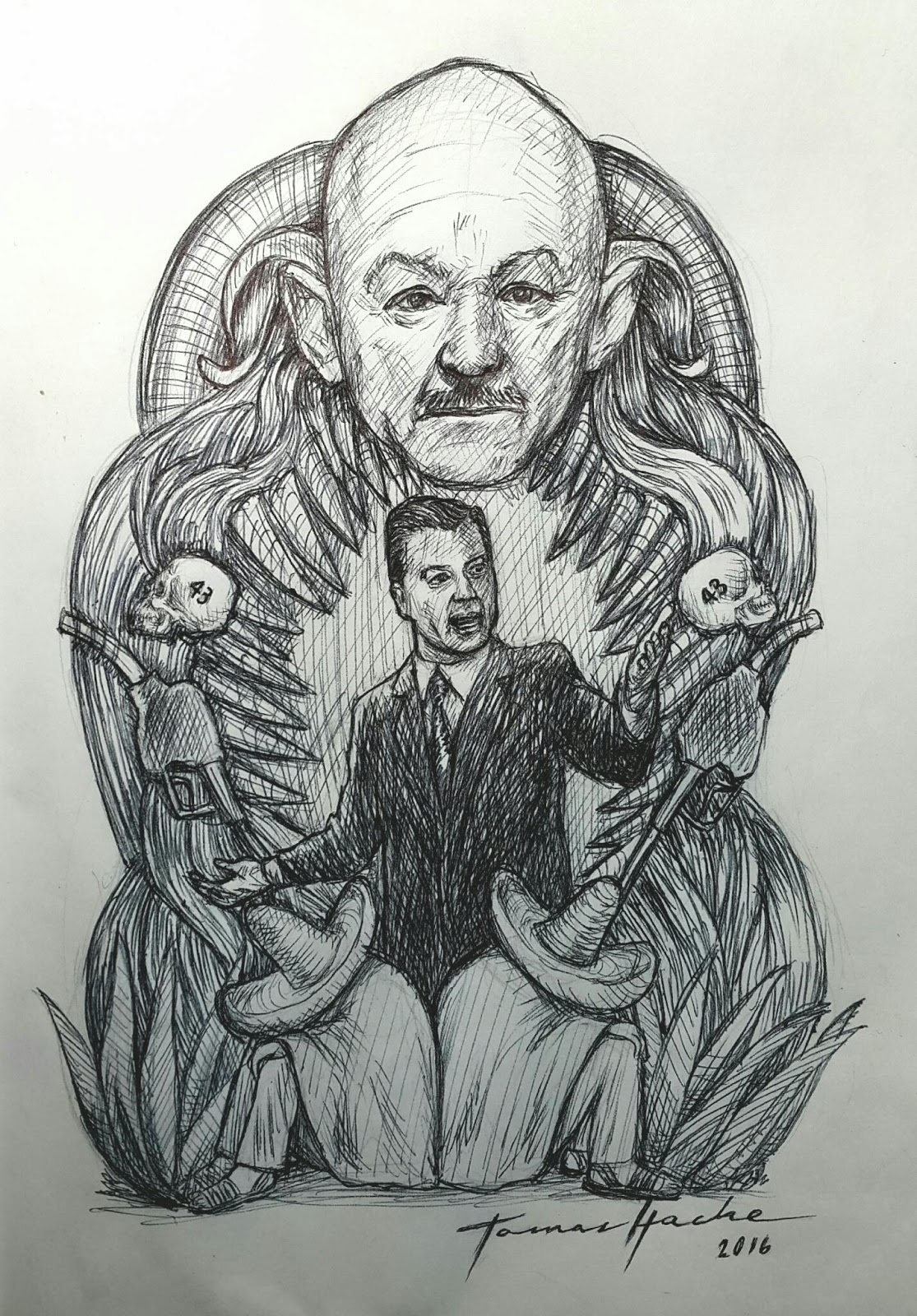 | Día 15. Los engranajes de la política mexicana, 2016. Tinta sobre papel. 25cm x 19cm. #inktober2016 |